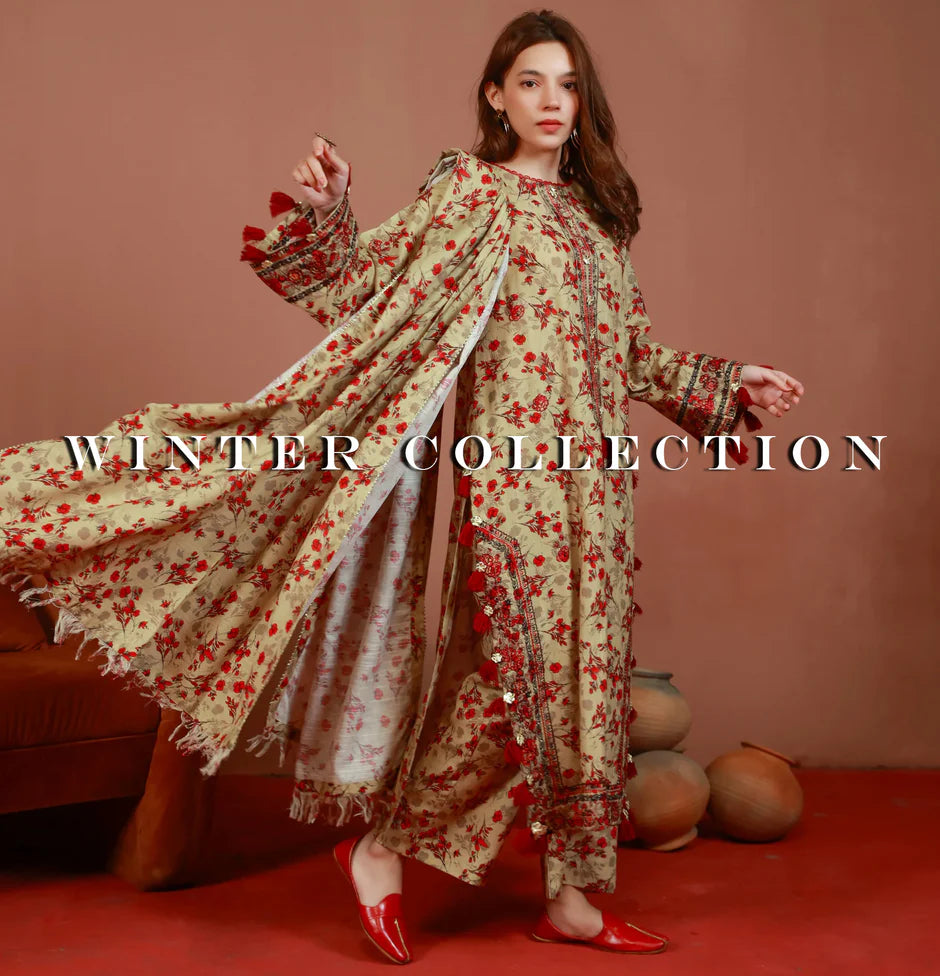 Farshi Shalwar paired with a beautifully embroidered shirt in breathable khaddar fabric. Available in stunning...