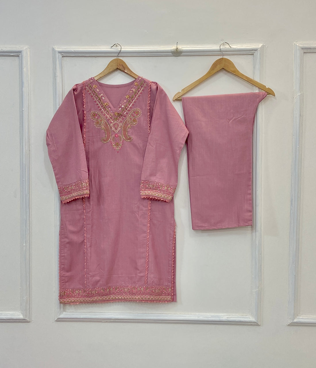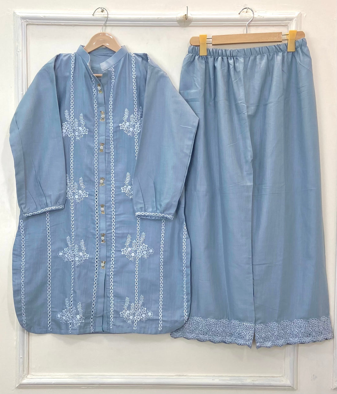 Gorgeous 2PC outfit on high demand! Features a beautiful overall embroidered long shirt paired with...