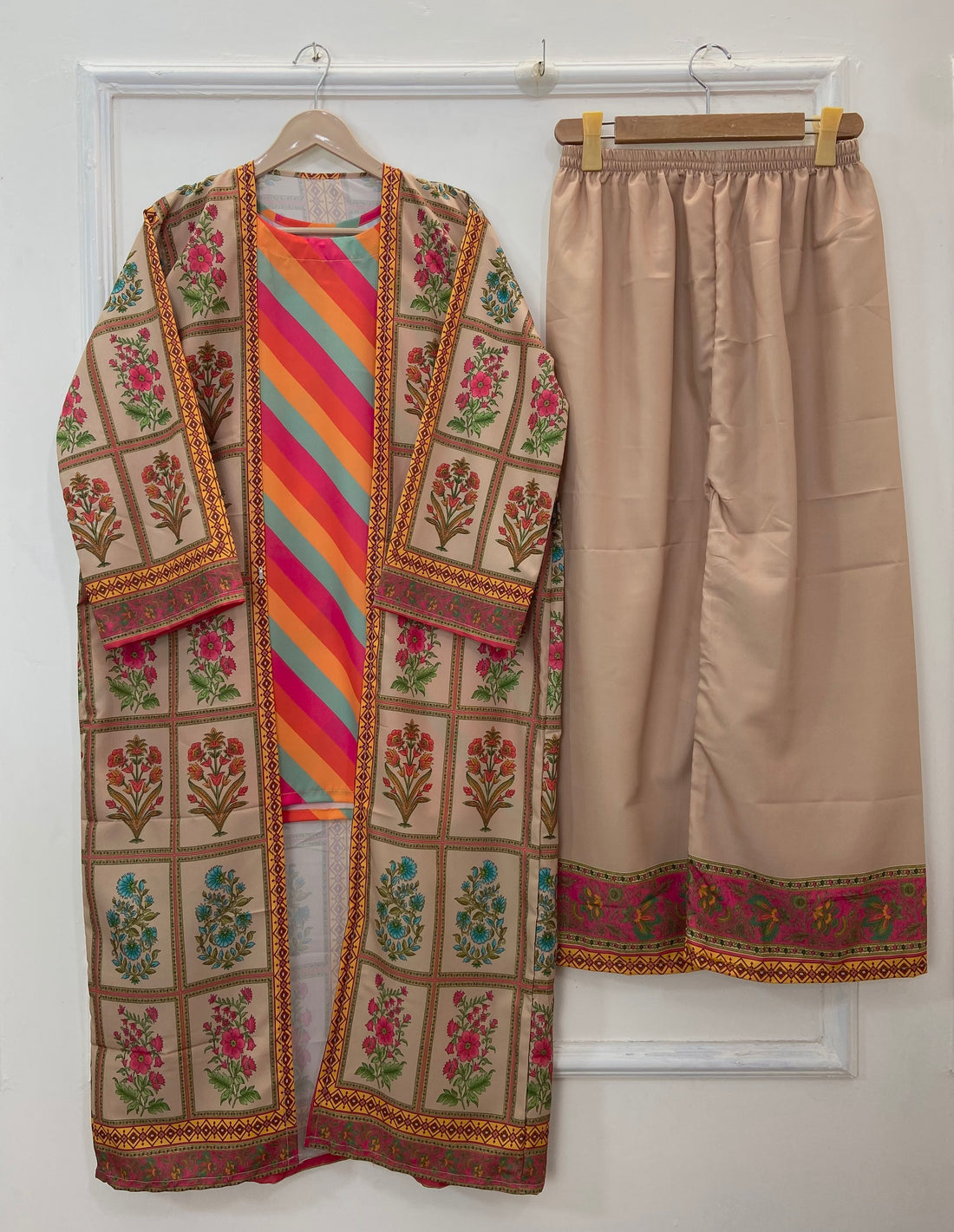 Farshi Shalwar, 2PC embroidered in bold & nude colors!! Details: - 2-piece set includes embroidered...