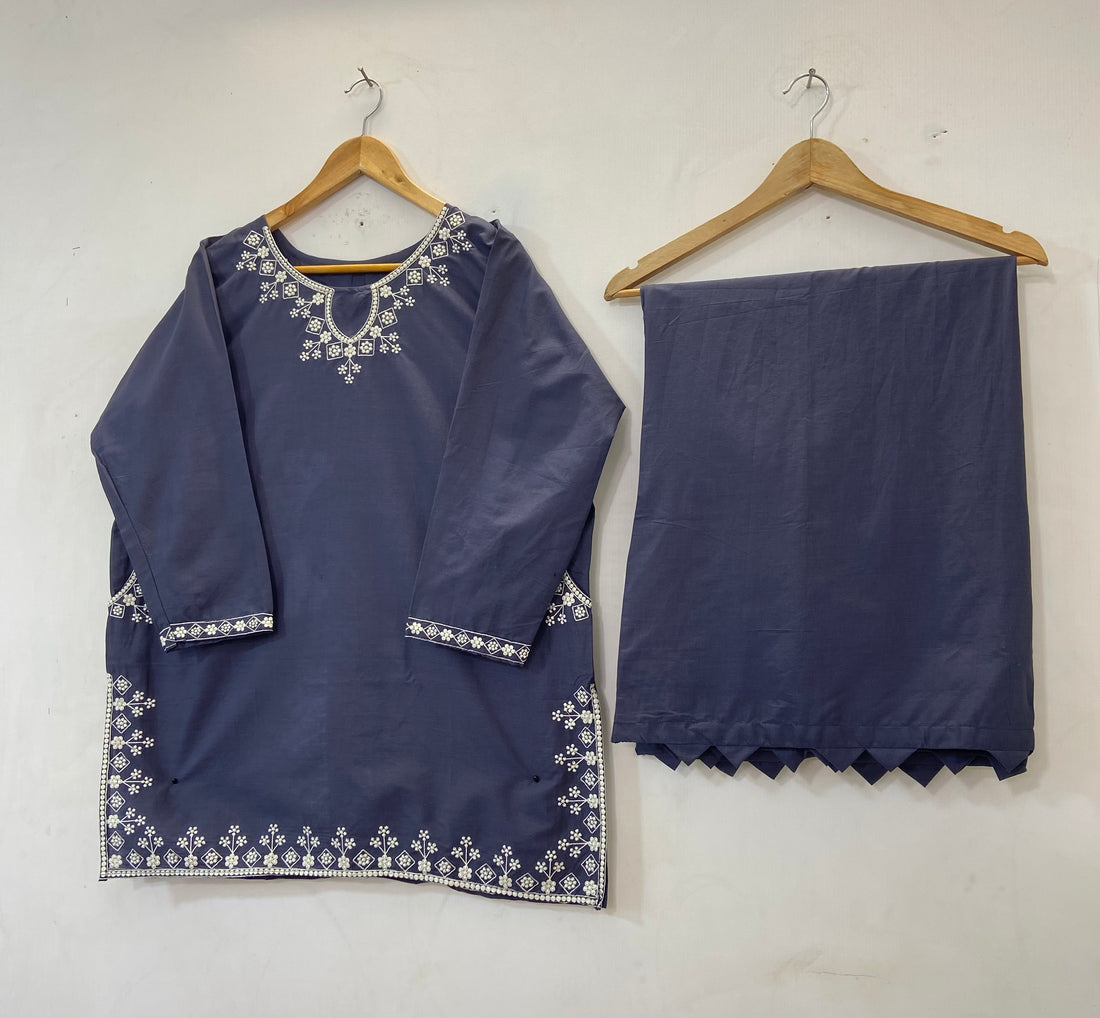 Casual Embroidered Co-Ord Set (Cotton Lawn) D-33