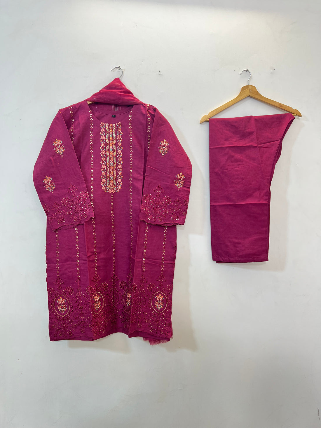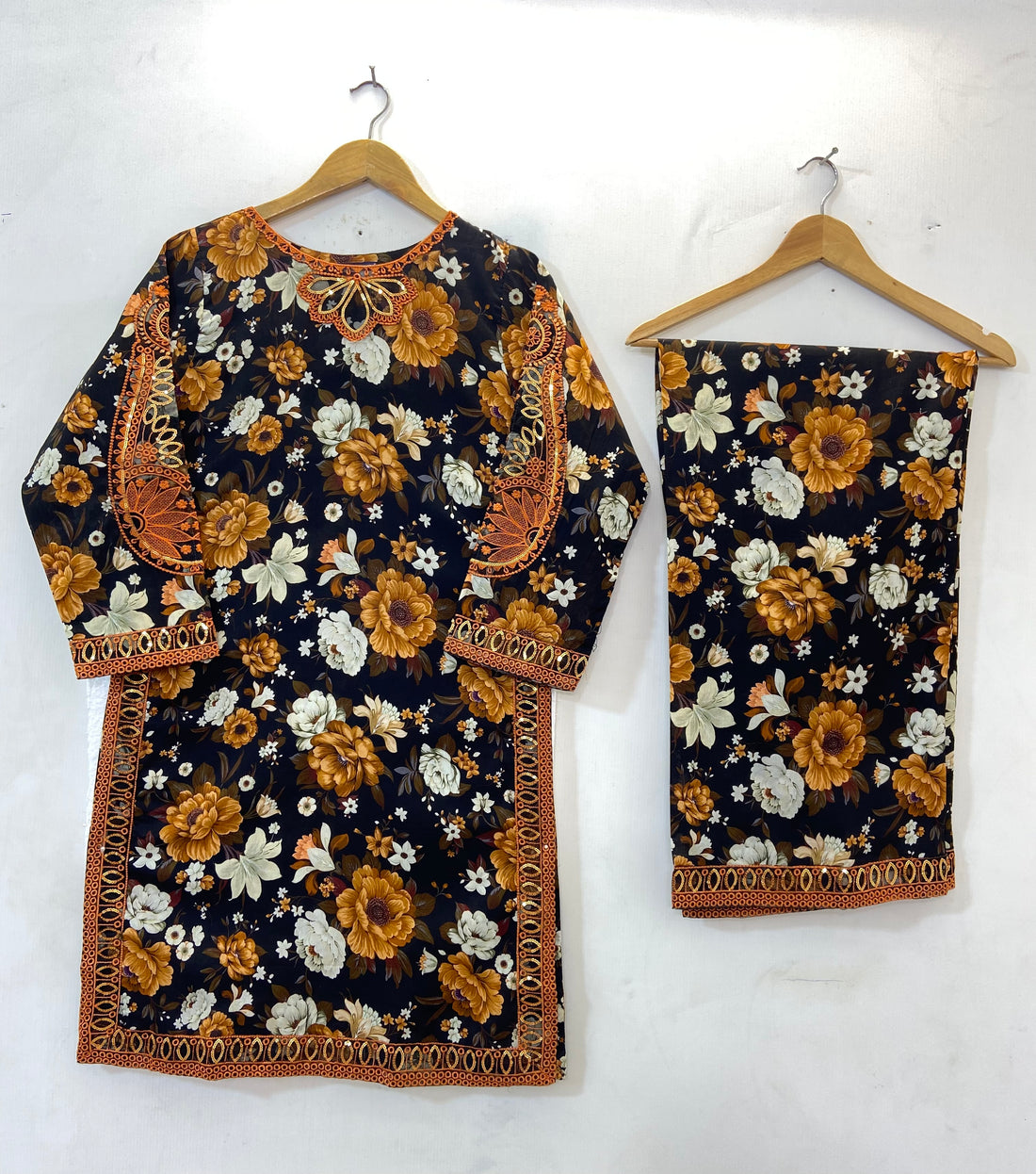 Sequins Embroidered 2PC Co-Ord Set, featuring an embroidered shirt paired with a sequins embroidered flapper...