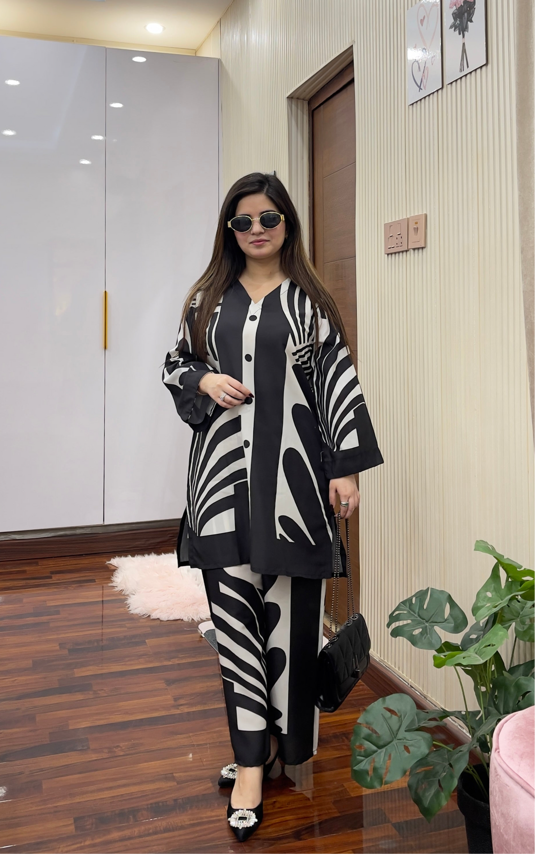 Most Trending Co-ord Set, baggy style short shirt with flapper trouser. Premium swiss silk fabric...