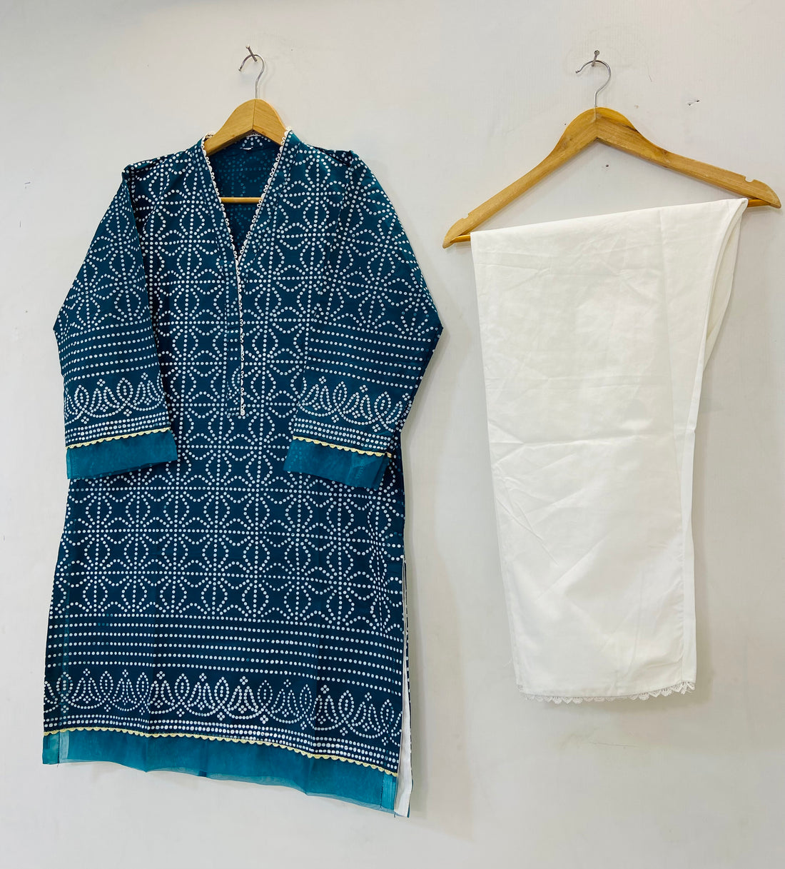 Farshi Shalwar paired with a beautifully embroidered shirt in breathable cotton lawn fabric. Available in...