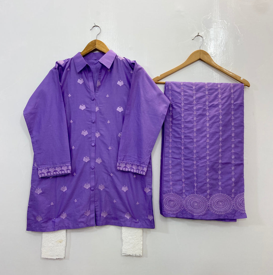 Embroidered Collar Style Co-Ord Set (Cotton) D-89