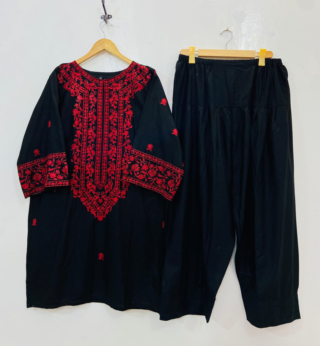 Farshi Shalwar paired with a beautifully embroidered shirt in breathable khaddar fabric. Available in stunning...