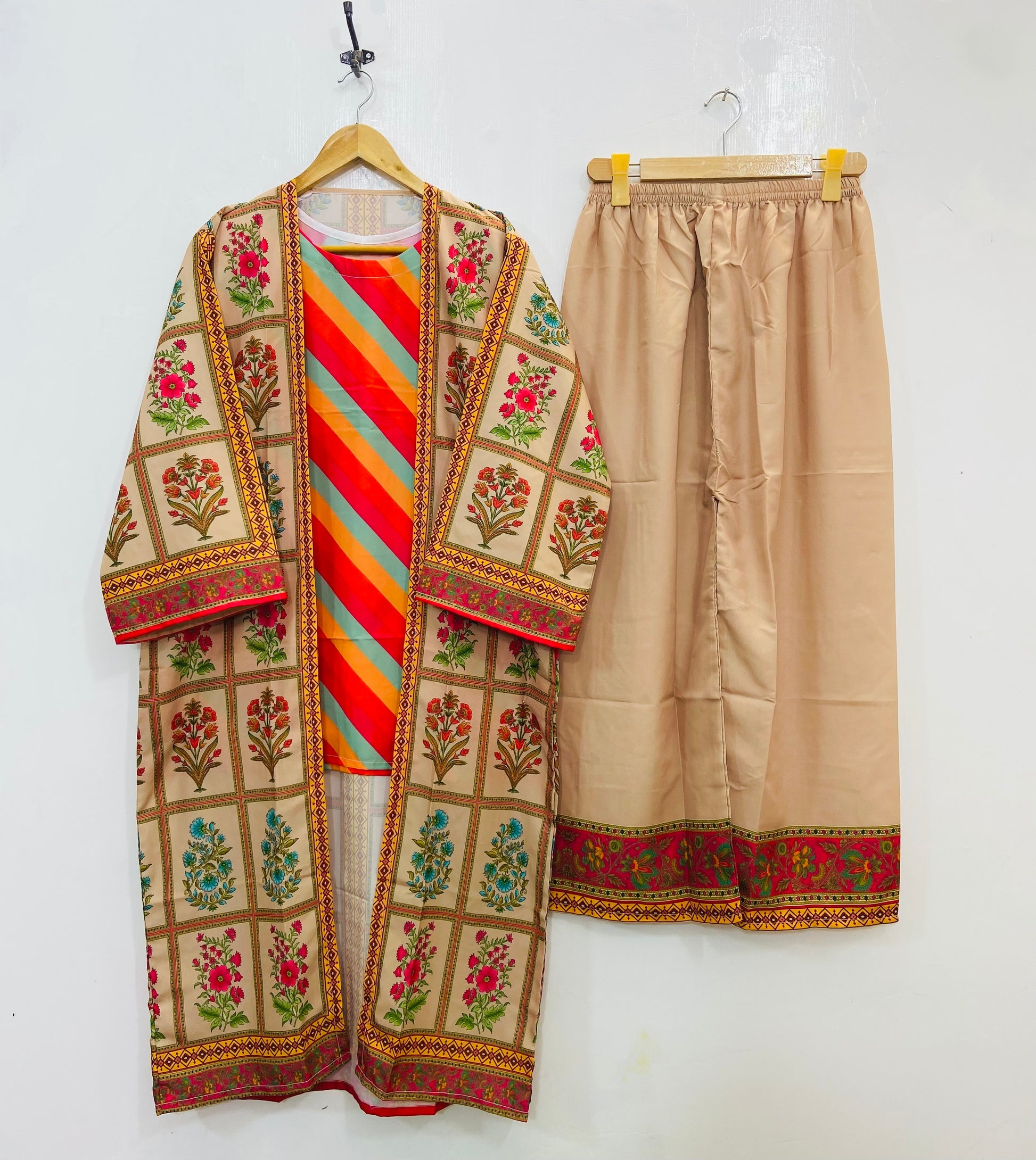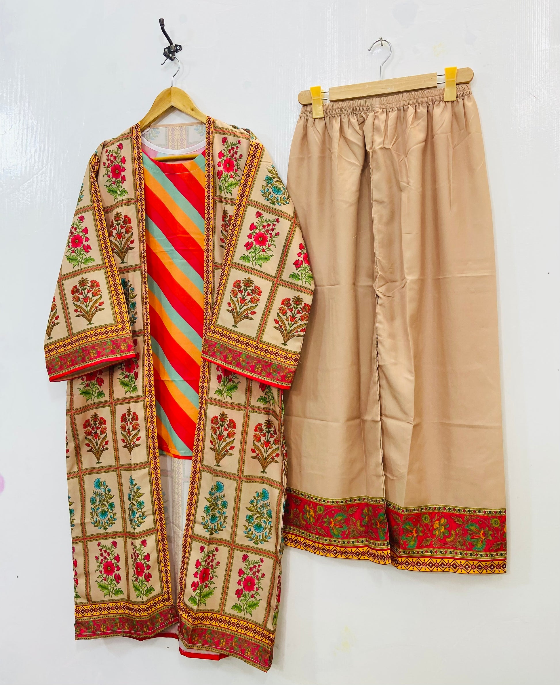 Make a lasting impression with our luxurious Swiss Silk outfit, combining a short shirt, straight trouser, and flowing long gown.