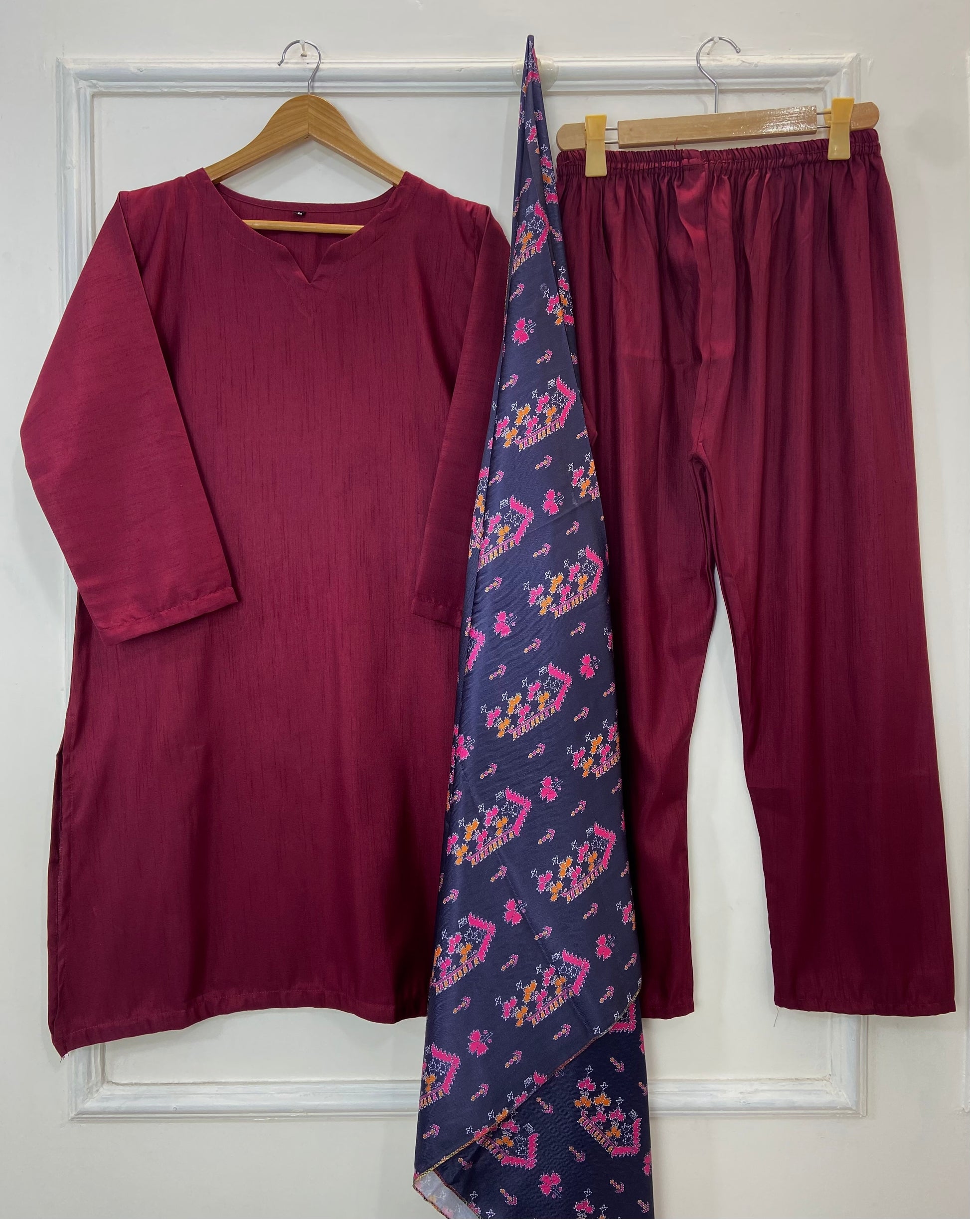Woolen Shawl Luxe 3PC (Raw Silk) D-168