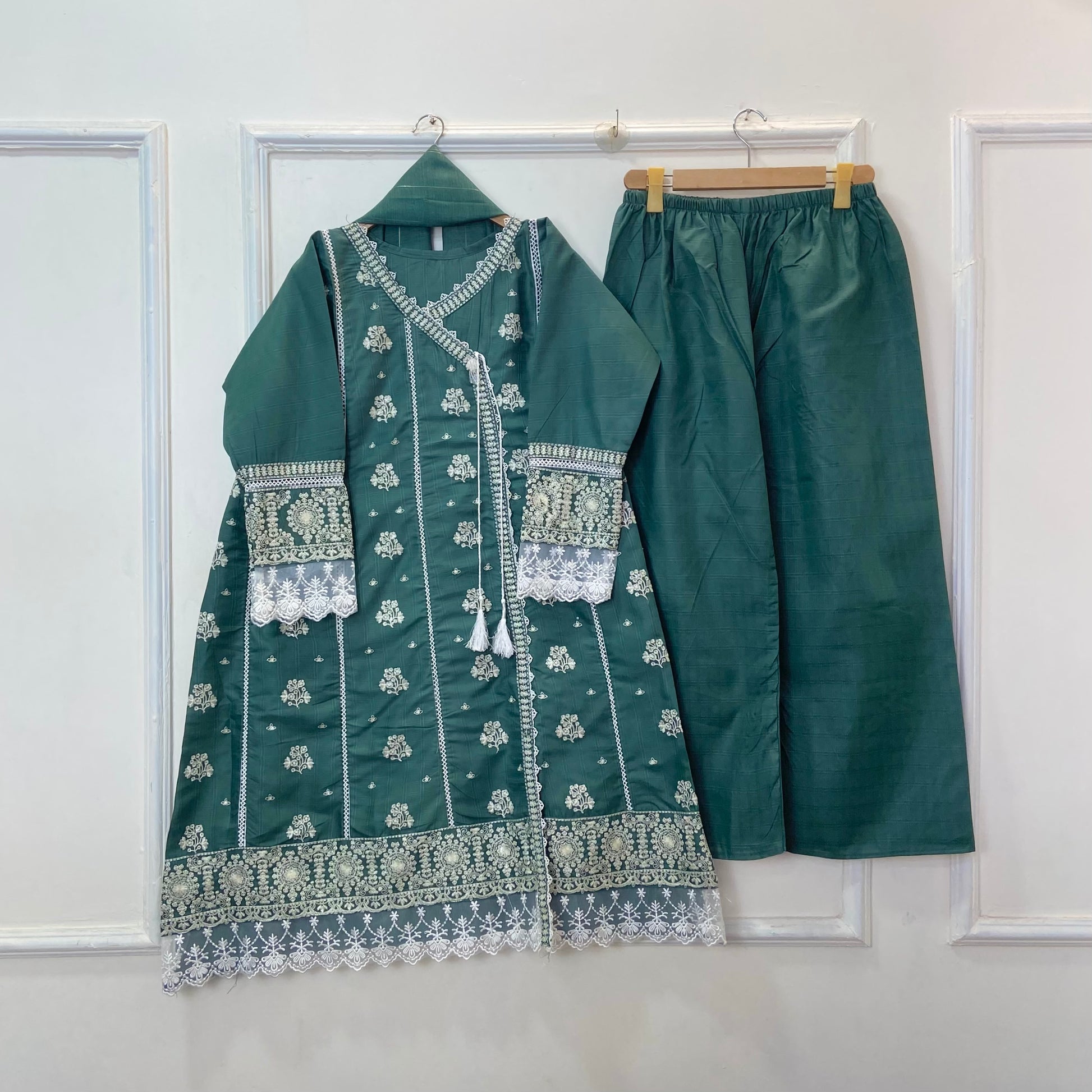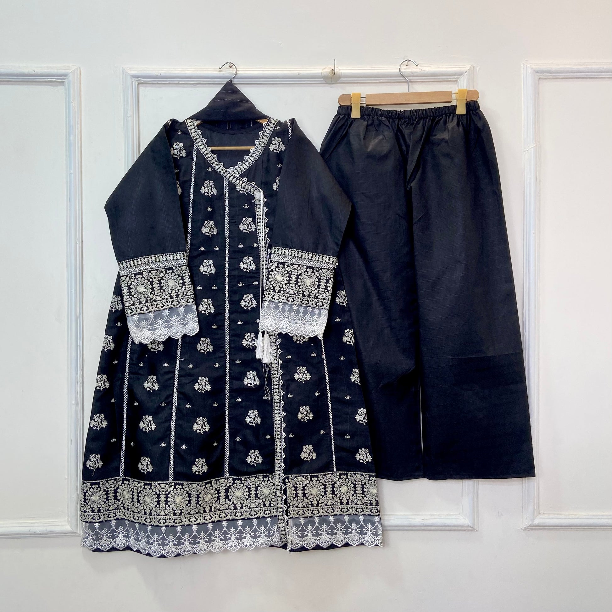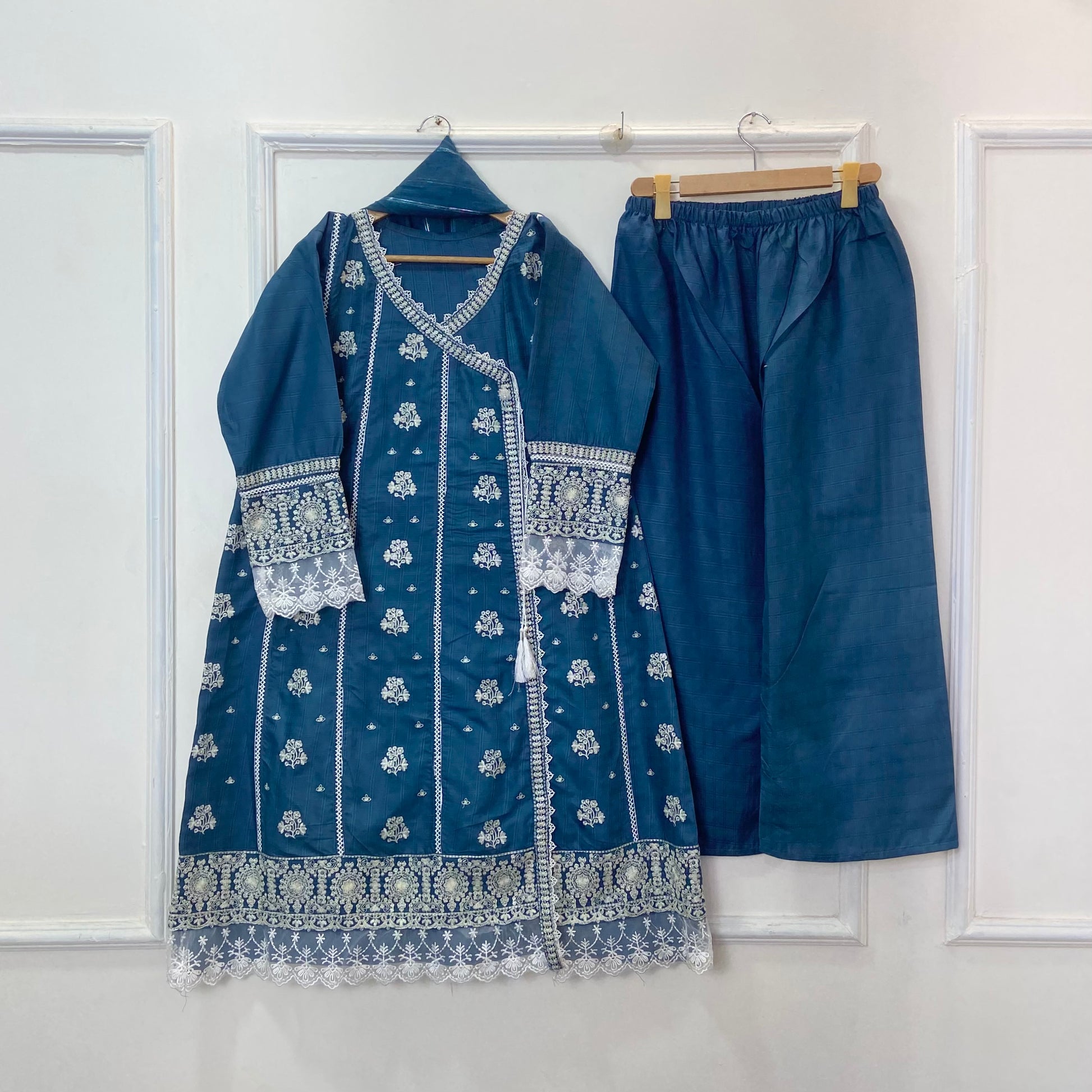 Angrakha Allure Embroidered Frock 3PC (Cotton) D-368