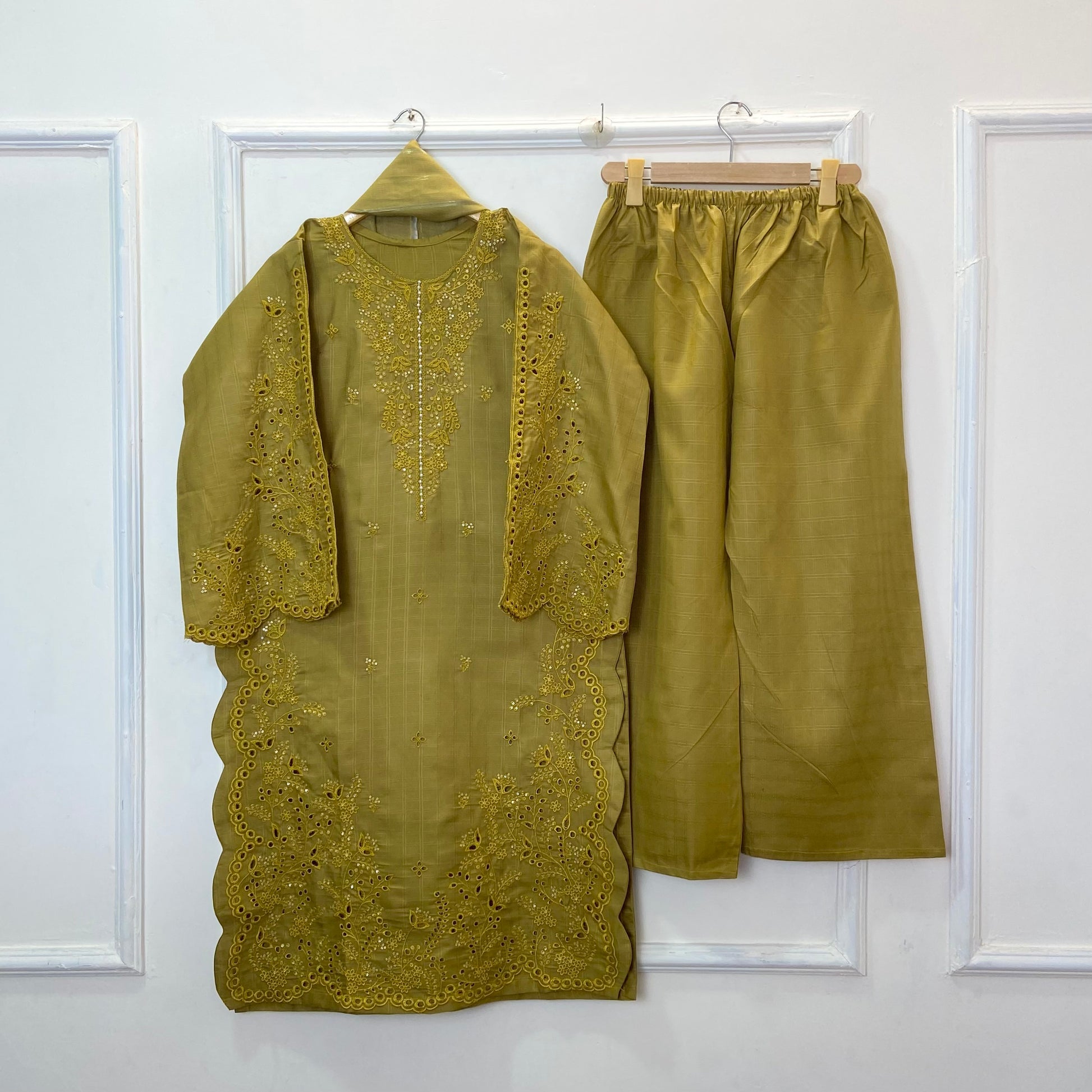 Noori Chicken Kari Embroidered 3PC (Doria Cotton) D-377