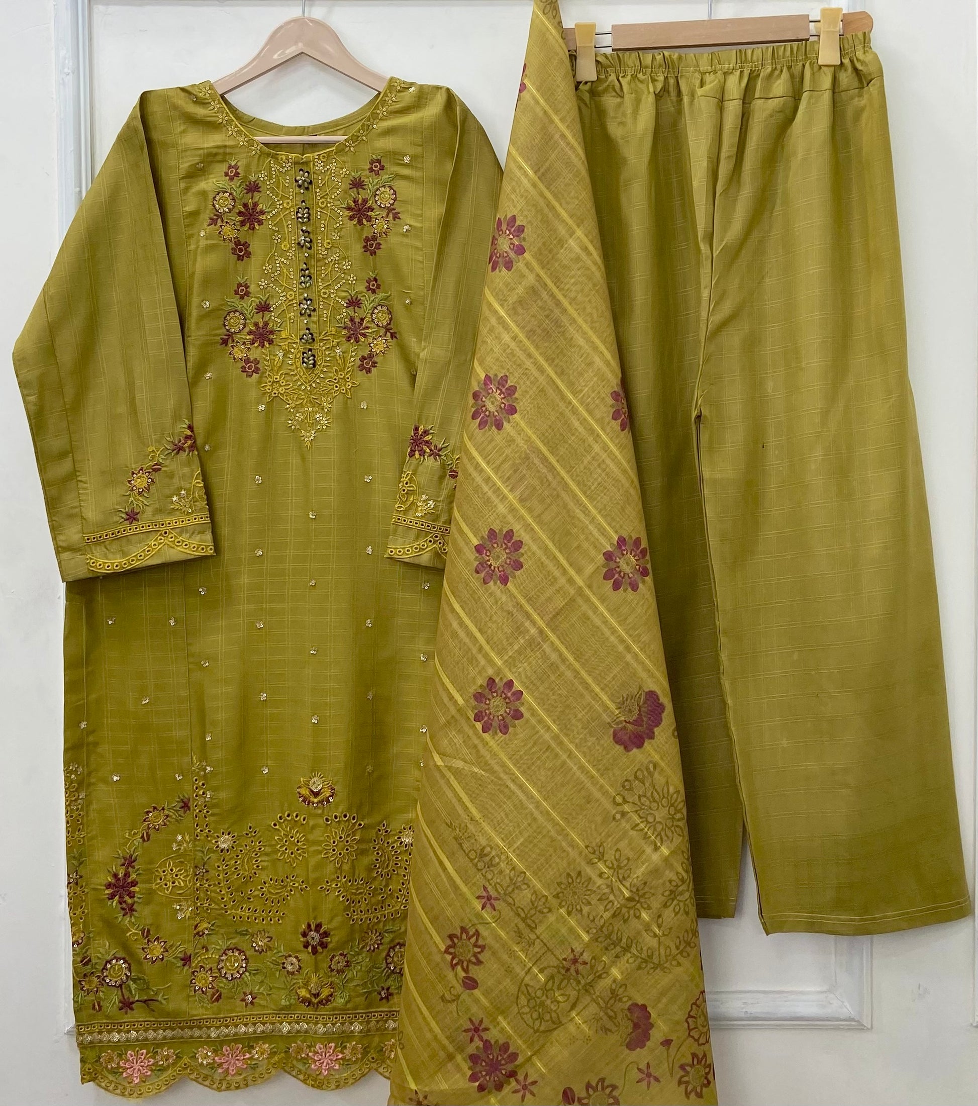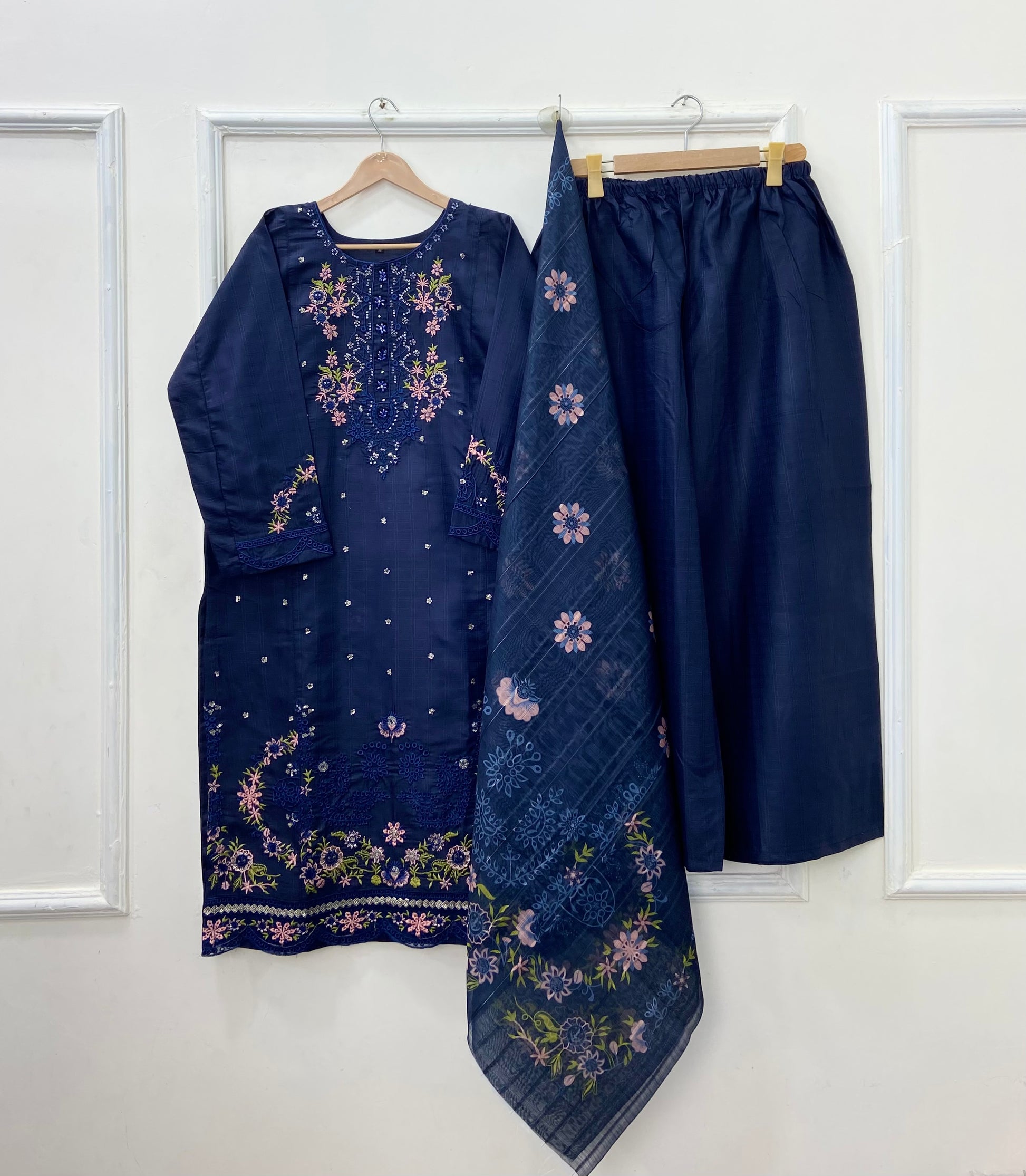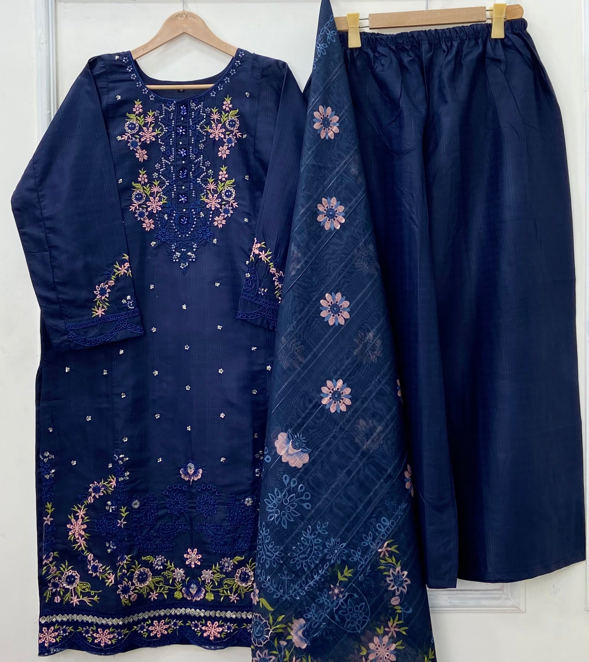 Long-Embroidered 3PC (Premium Cotton) D-439