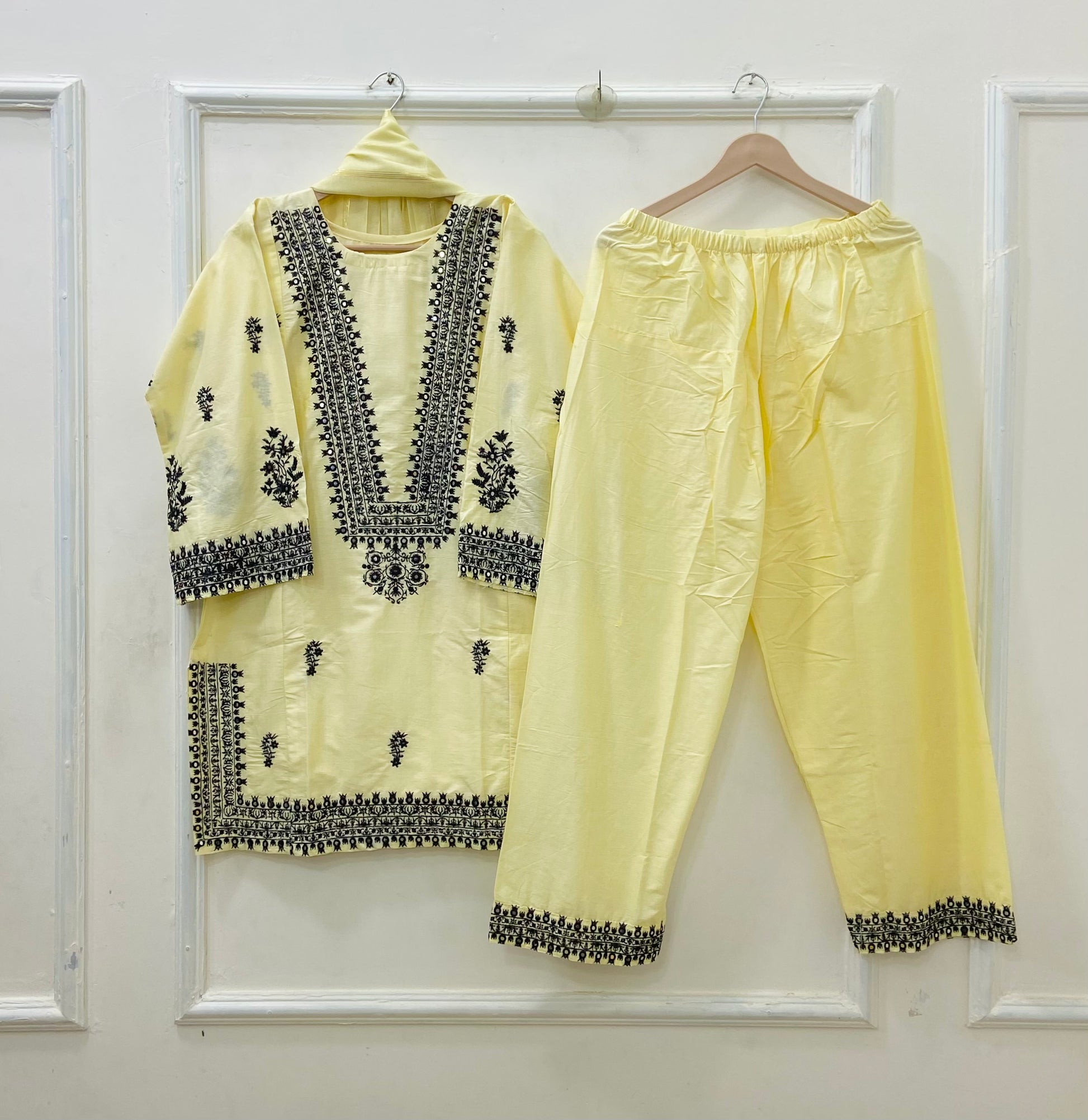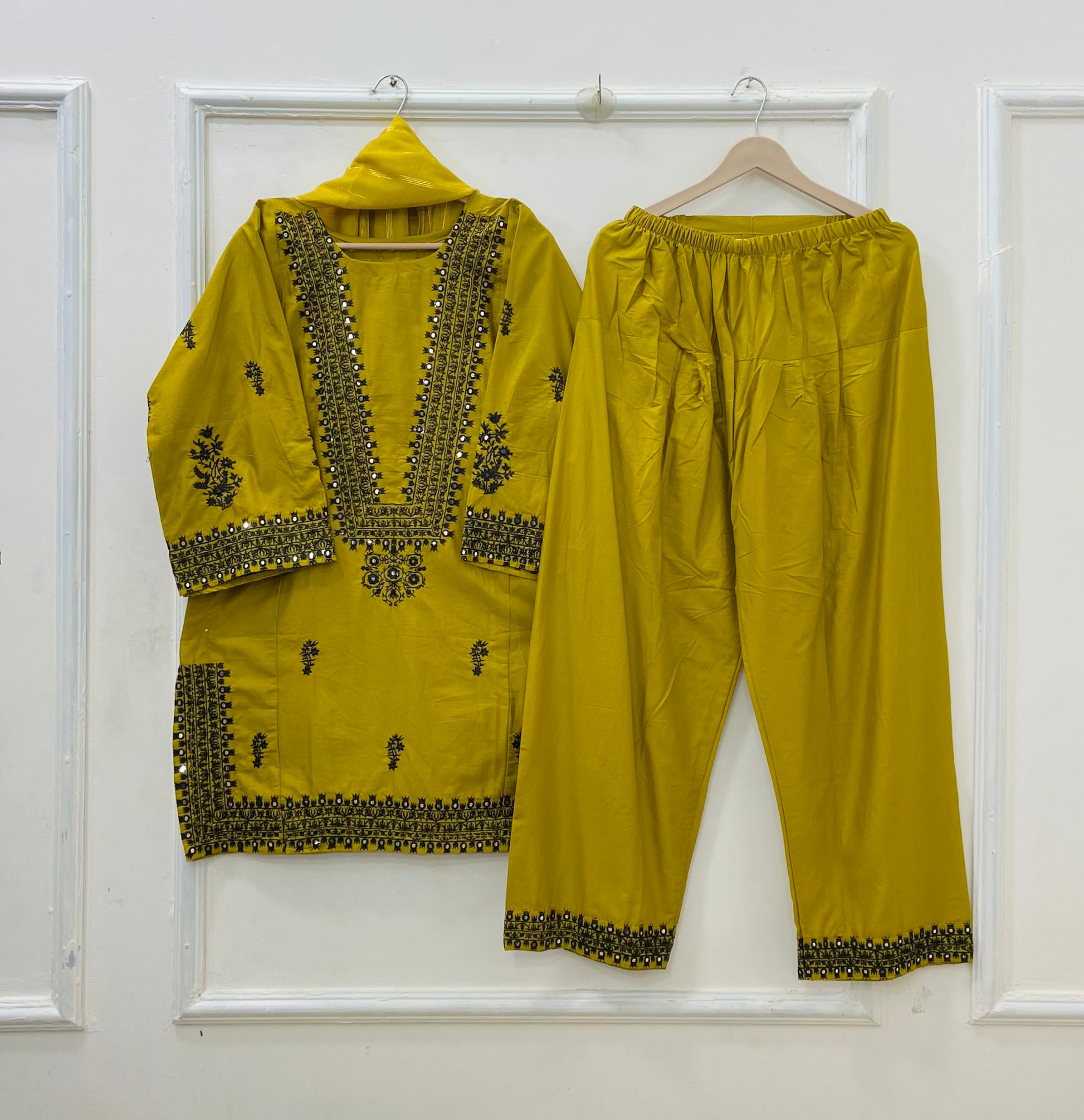 Introducing Summer Colors In Our Most Demanding Foil Embroidered Shirt with Foil Embroidered Farshi Shalwar! Perfect for the season, this outfit combines comfort and style effortlessly. With intricate embroidery and foil work in summer pastel colors, you'll shine at any gathering. Get your hands on our latest article now!